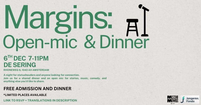 Margins: Open-mic & Dinner is a community evening for statushouders and anyone looking to meet new people in Amsterdam.