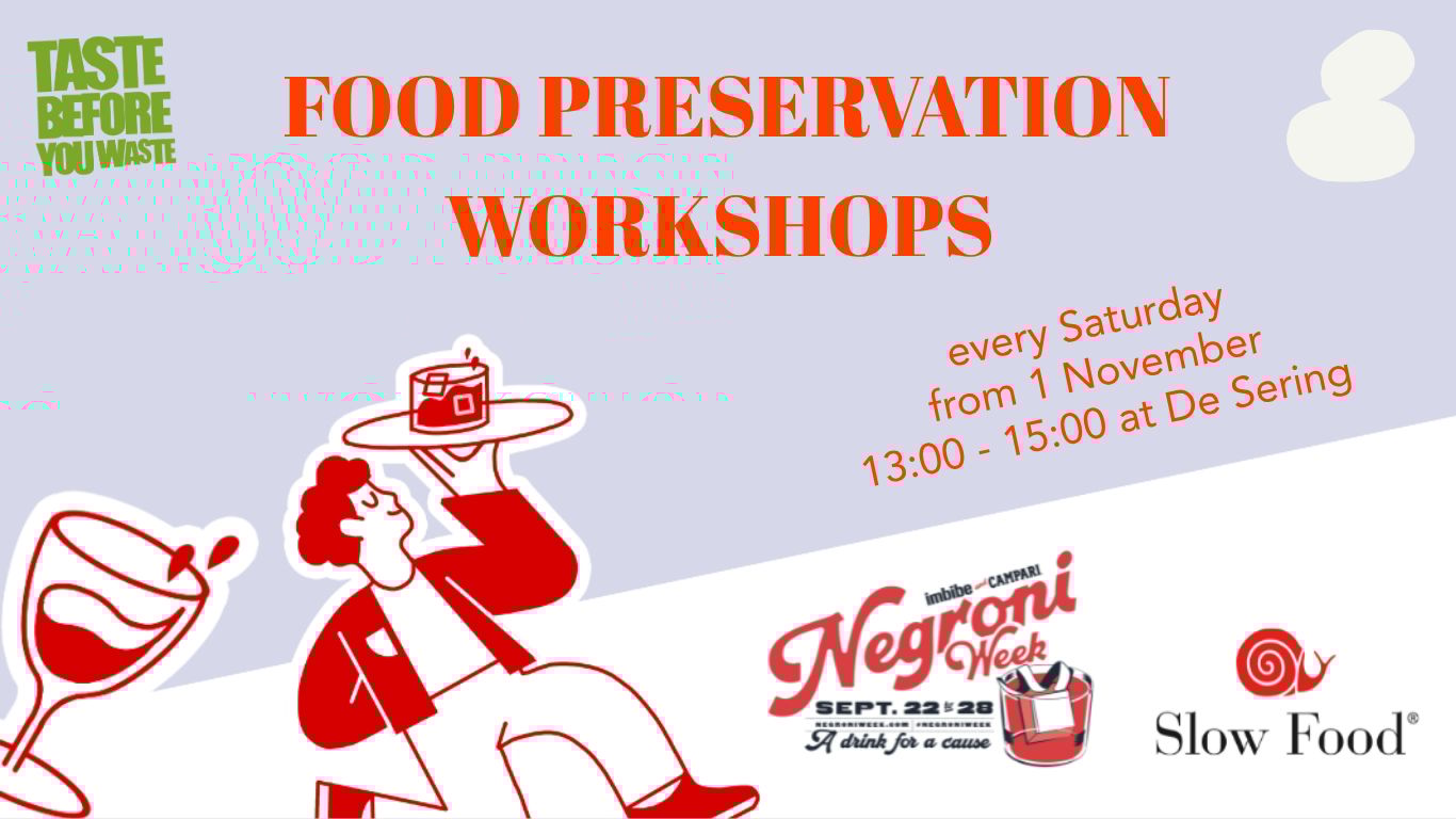 And what’s best? We will do it together! You are welcome to join us from 13:00 until 15:00 at De Sering each Saturday for our free workshops. We will get crafty and creative through various preservation techniques - think fermentation and pickling.